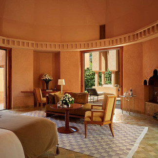 Amanjena, meaning “peaceful paradise,” is Aman Resorts’ serene Moroccan retreat located just outside the historic city of Marrakech. Designed to echo the rose-hued buildings of the Red City and inspired by traditional Moorish and Berber architecture, the resort offers an opulent, tranquil escape for travelers.